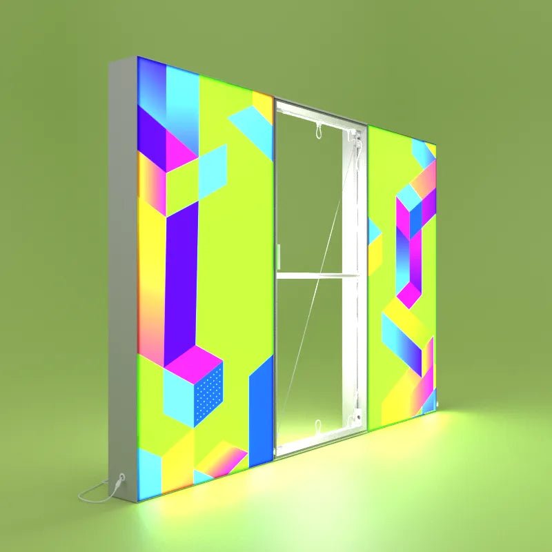 Unsere hinterleuchteten Systeme sorgen für eine auffallende Präsentation auf Messen, Events und am POS. Die austauschbaren Textildrucke sind jederzeit flexibel anpassbar.